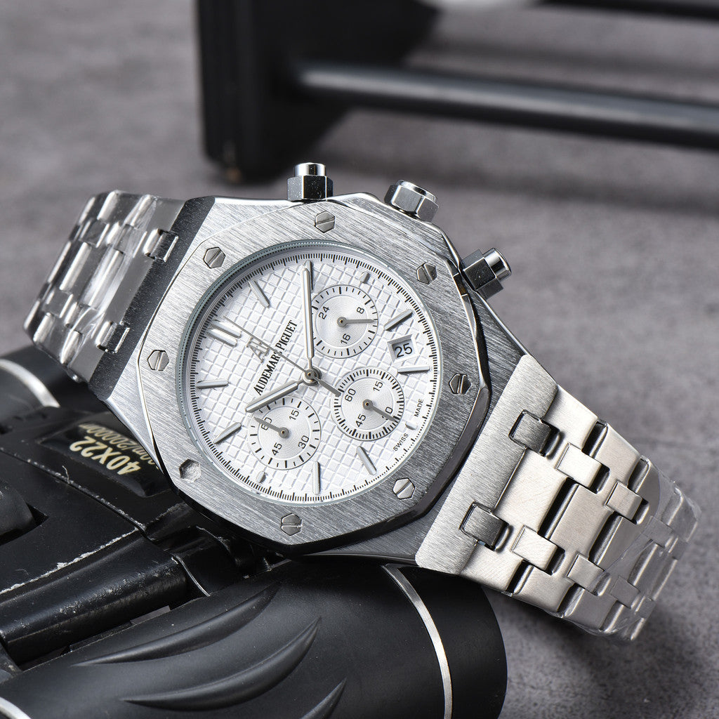 AP Royal Oak 6-Hand Chronograph Watch Man's Business Watches Luxury Stainless Steel Quartz Full Function Luminous Wristwatches